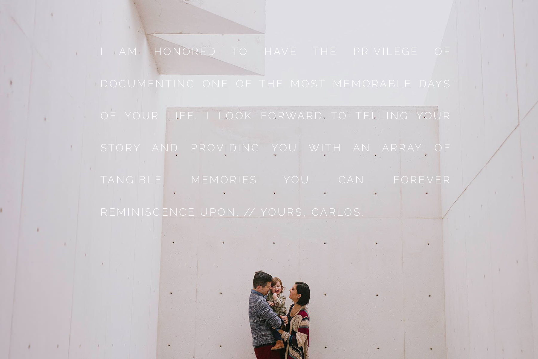 We chose Carlos because after a google search his photos were our favorites. Afterwards he was very friendly and professional, we instantly felt comfortable asking him for opinions or ideas even though we had never met him in person.